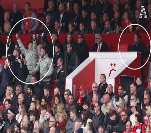 因红牌禁赛一场的马雷斯卡在看台上为切尔西进球欢呼庆祝的同时,在这位意大利人身后几排的是埃万杰洛斯·马里纳基斯,他正注视着场上情况。