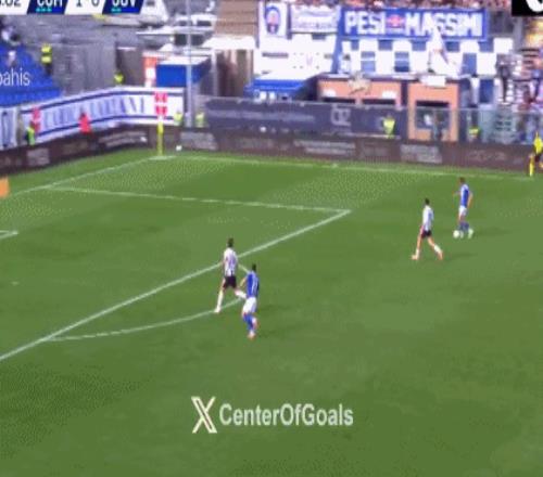 这是科莫的角球,尼科-帕斯开出战术角球,队友回做,尼科-帕斯左脚传中,后点的肯普夫抢点攻门得手,科莫1-0领先!