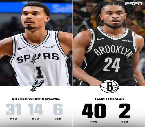 篮网对马刺,托马斯40分难敌文班“火锅宴”