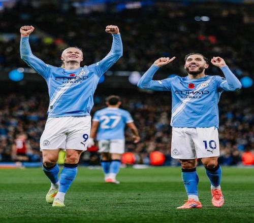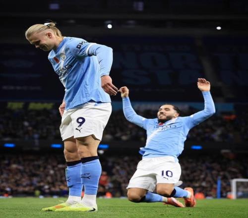 第33分钟,谢尔基送出本场第二次手术般直塞,哈兰德长途奔袭过掉门将后推空门得手,完成梅开二度,曼城2-1再度领先,这是他本赛季第5次单场至少进两球,超越凯恩,五大联赛独一档的梅开二度狂人。挪威锋霸10战13球,延续了和姆巴佩在五大联赛的“金靴对冲战”。随后曼城的进攻狂潮不减,多库几次突破制造威胁,谢尔基任意球差点再度破门,被彼得罗维奇神扑化解。