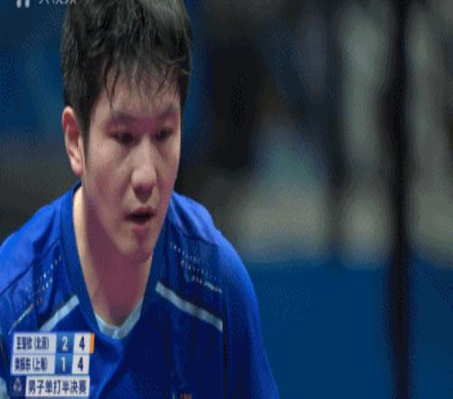 1-4落后开局之后,樊振东依靠两个高强度相持,然后又接了一个前三板变化(高抛纯纯不转),迅速抹平王楚钦开局的优势。王楚钦叫了暂停,结果回来之后第一球碰上了樊振东的变态反应。