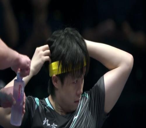 樊振东额前的头发已经被汗水彻底弄成了一坨二维码,上一局一结束樊振东就向裁判申请换掉差不多已经被汗水打湿到贴身的衣服。