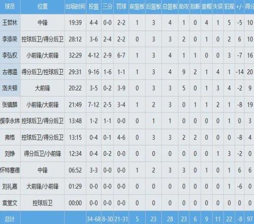 上海队数据如下: