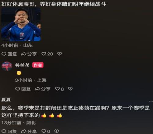 12月17日,上海申花队员蒋圣龙在自己的社交平台发布消息“陪伴身体6个月的积液 说再见”。这也说明了,在队内肩负重担的他最近半年都是带伤出战。