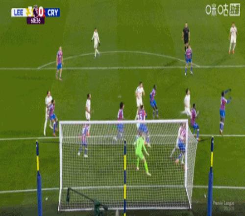 第60分钟,比约尔助攻,阿姆帕杜捅射破门再下一城,利兹联3-0水晶宫