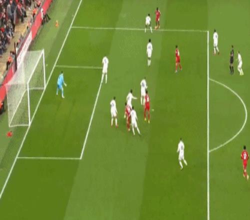 易边再战,第56分钟,索博斯洛伊传中,乔-戈麦斯摆渡,范戴克后点凌空抽射,巴恩斯利门将扑了一下,随后又击中横梁弹出。
