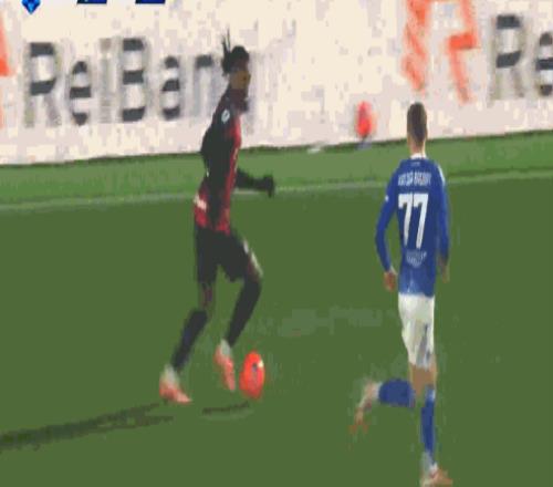 第45+1分钟,萨勒马科尔斯前场反抢送出直塞,拉比奥特跟进对抗后倒在禁区内,主裁第一时间判罚点球,VAR介入维持点球原判,恩昆库主罚被扑了一下还是命中,米兰扳平比分。